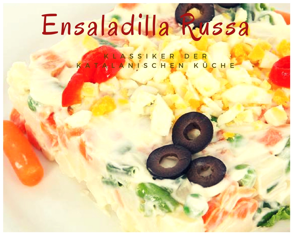 Dank seiner Allerweltszutaten und der einfachen Zubereitung ist Ensaladilla Russa in Katalonien ungefähr so populäre wie in Deutschland Currywurst mit Pommes. Der Vorläufer der Ensaladilla Russa war hingegen eine Luxus-Kreation aus seltenen, teuren Zutaten, unter ihnen vermutlich Rebhuhn, Krebsfleisch, Kaviar und natürlich Mayonnaise. Das Originalrezept, so glaubte man lange, erfand Lucien Olivier, ein belgischer Koch französischer Abstammung, der in der 2. Hälfte des 19. Jahrhunderts in seinem Moskauer-Restaurant Ermitage Zaren, Aristokraten und Literaten bekochte. Das Rezept des Gerichtes, das als „Salat Olivier“ in Russland berühmt wurde, hat sein Erfinder mit ins Grab genommen.